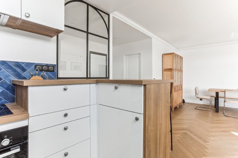 Projet de rénovation Saint-Charles Rénovation d’un appartement, Paris 15ème Nous avons effectué la rénovation d’un appartement à Paris dans le 15ème arrondissement. Il s’agissait pour notre société, Square Rénovation, de transformer ce bel espace de 107m² en un espace modulaire et optimisé. Notre conducteur de travaux, sur la base de plans d’intention de nos clients, a travaillé dans ce sens et a restitué un bien fonctionnel et agréable à vivre. La rénovation de cet appartement a eu lieu dans le quartier Javel, proche du parc André Citroën. Ce quartier est apprécié des résidents et des visiteurs pour ses commodités, son dynamisme et sa proximité avec la Seine. Il a fallu plusieurs mois pour réaliser l’ensemble de ces travaux durant lesquels nous avons complètement relooké et réagencé l’appartement. Le Projet Saint-Charles en images : shoootin-photo-1shoootin-photo-11shoootin-photo-14shoootin-photo-12shoootin-photo-13shoootin-photo-8shoootin-photo-2shoootin-photo-4shoootin-photo-3shoootin-photo-5shoootin-photo-6shoootin-photo-7shoootin-photo-9shoootin-photo-10 Objectifs et problématiques du projet Saint Charles L’objectif de la rénovation était de remodeler l’appartement, c’est-à-dire modifier l’implantation des pièces et leurs fonctionnalités en permettant une certaine modularité dans le futur. Les pièces d’eau ont également été repensées, de façon à créer des espaces fonctionnels et modernes à la fois. Les Étapes de la rénovation de l’appartement à Saint-Charles Avant d’attaquer la phase travaux, les propriétaires ont travaillé avec notre conducteur de travaux sur leurs besoins et la définition des volumes, les circulations… SQUARE RENOVATION, l’entreprise de rénovation d’appartement à Paris est ensuite intervenue pour la réalisation des lots techniques et architecturaux : cloisonnement des pièces, électricité, plomberie, peinture, menuiserie intérieure et extérieure… La démolition et le recloisonnement. Dans le cadre de son activité professionnelle à domicile, notre client souhaitait créer un espace dédié et proche de la pièce de vie principale avec la possibilité d’évoluer en chambre d’enfant, par la suite. Nous avons donc abattu certaines cloisons pour réduire le séjour et consacrer une partie de la surface à cette création de bureau, avec vue directe sur la terrasse. Nous l’avons pourvu de portes vitrées, pour la transparence des lieux et la luminosité. Puis, nous avons créé une chambre d’enfant. La chambre parentale a elle, été redistribuée avec la création d’un dressing. Nous avons également créé une cuisine ouverte en supprimant une partie de la cloison du couloir. Les chassis vitrés. Un important travail de rénovation a été réalisé pour apporter de la lumière dans les différents espaces. Ainsi, la cuisine, transformée en espace ouvert vitré grâce à la pose d’une verrière type “atelier” et les portes vitrées du bureau plongent l’appartement dans un bain de lumière. Les revêtements. Le sol de l’appartement est revêtu d’un parquet que nous avons rénové par ponçage et vitrification. A cette étape de la rénovation, il a été nécessaire de compléter le revêtement, à l’endroit notamment de l’ancienne cuisine. La menuiserie intérieure. Afin de rendre cet appartement le plus fonctionnel qui soit, nous avons créé un dressing dans la chambre parentale. Le témoignage du client sur Google (LIEN ICI) “Nous avons trouvé Square Rénovation via internet et nous sommes très heureux de nous être fiés aux avis. Le travail chez nous a été très bien suivi avec des comptes rendus hebdomadaires. La réactivité des équipes a été excellente et le travail réalisé très précis et appliqué.” Hélène B. Les acteurs de la rénovation de l’appartement à Saint-Charles Square rénovation a accompagné son client dans son projet de rénovation d’appartement à Paris 15è, du début à la fin. Toute notre équipe de Square était mobilisée : le conducteur de travaux, les artisans etc. Tous ont veillé à proposer des services de qualité en respectant les délais. Si vous aussi vous avez un projet de rénovation à Paris et que vous souhaitez obtenir des conseils, l’équipe de Square Rénovation est disponible pour répondre à vos questions. Pour cela, faites-nous parvenir votre projet de rénovation et faites la demande de devis gratuit ! Demandez votre devis de rénovation
