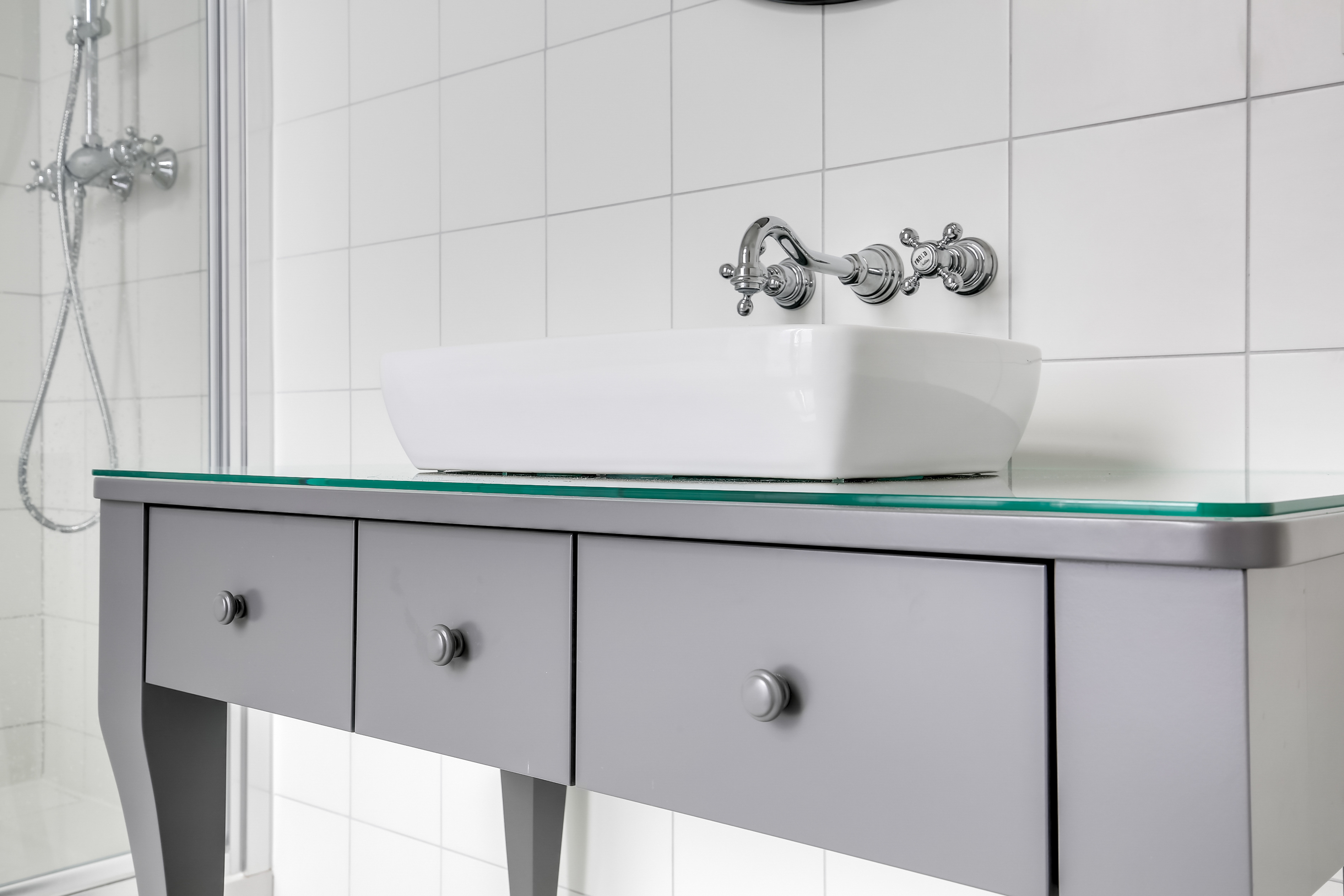 • Le meuble de la salle de bains a été imaginé par les clients et réalisé par notre menuisier.