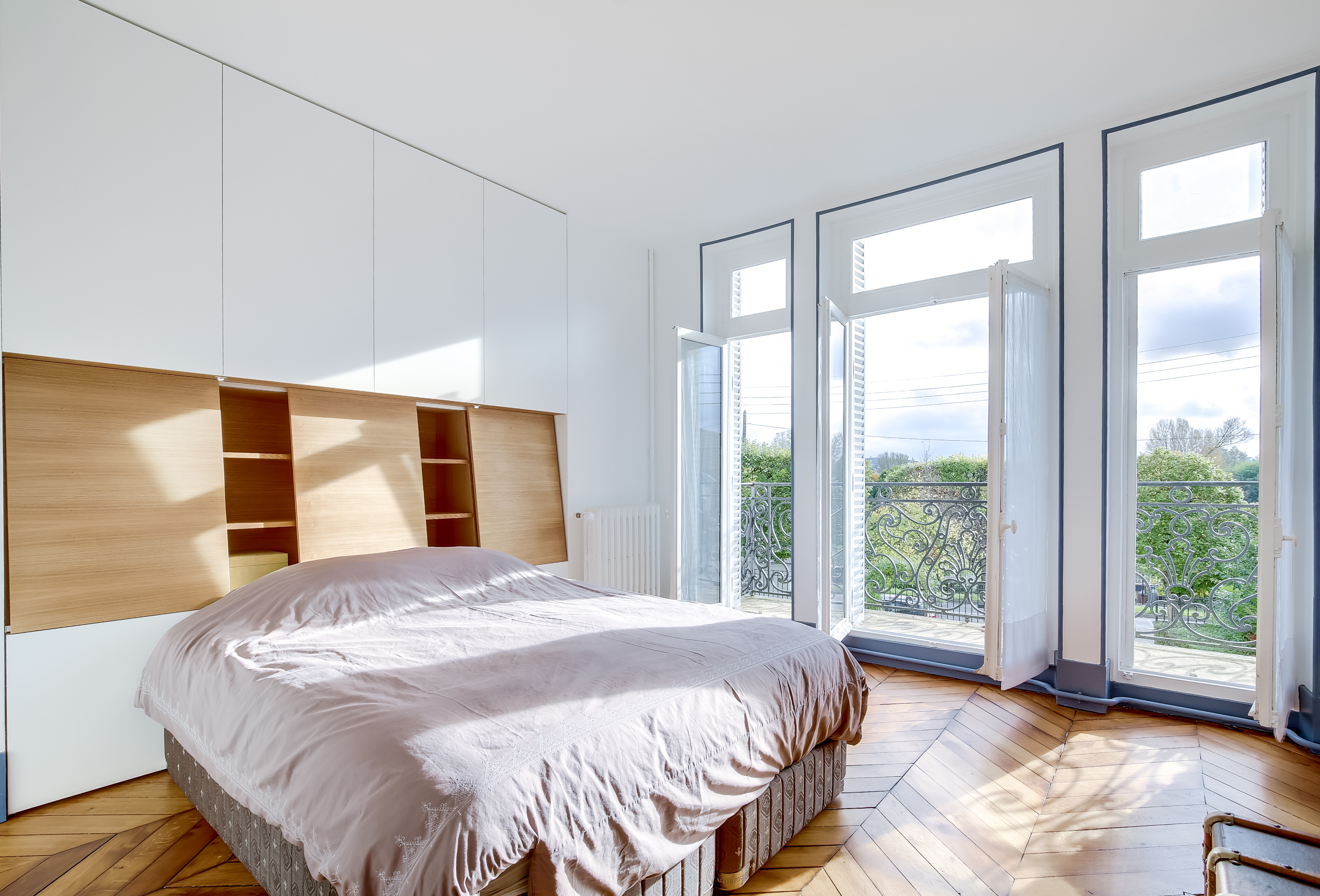 Cette rénovation de suite parentale a été réalisé en collaboration avec un spécialiste de l’architecture. L’objectif de ce réagencement, conçu par l’agence d’architecture Levisalles, était de créer un espace parental haut de gamme, lumineux et fonctionnel.